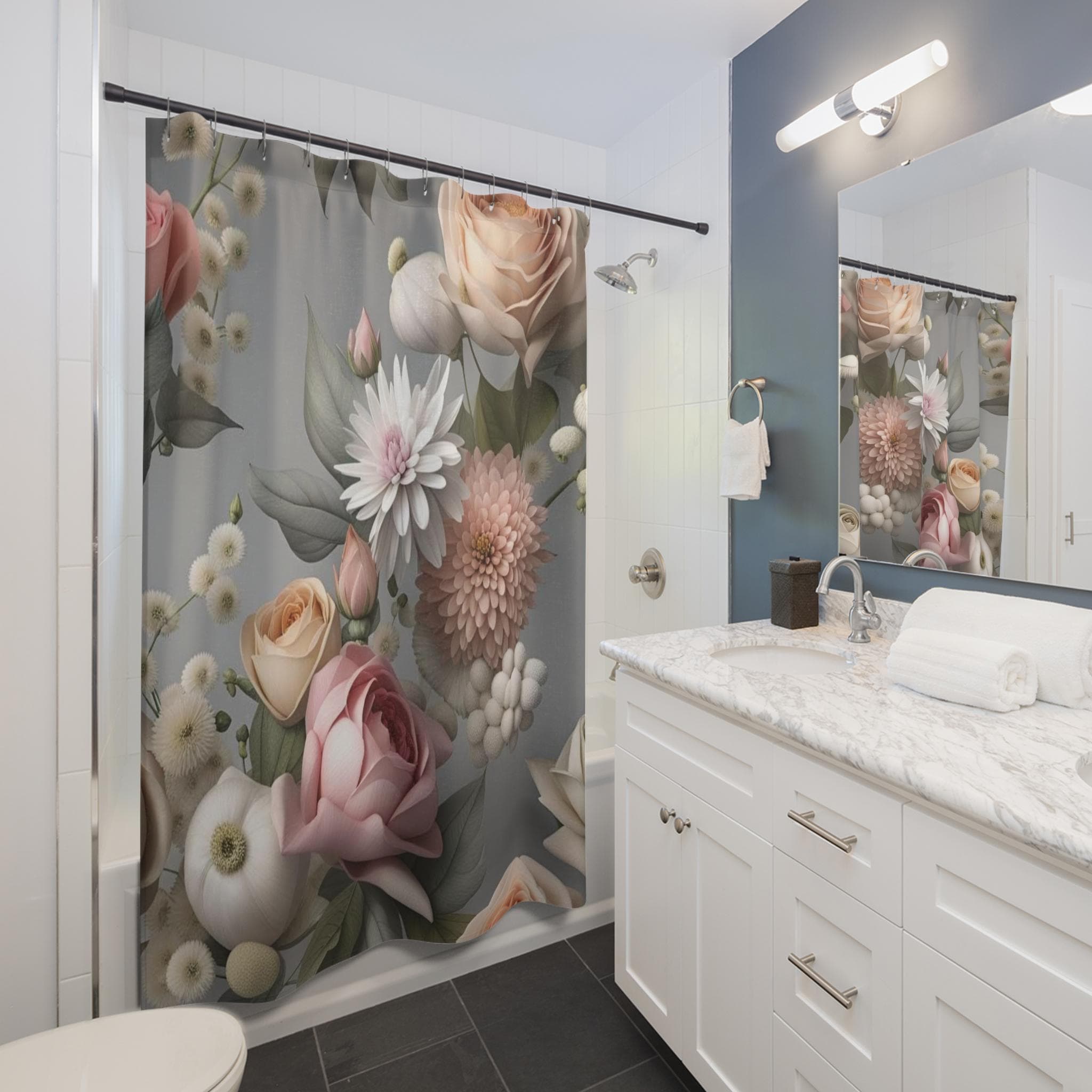 Transform your bathroom into a serene floral oasis with this stunning shower curtain. Crafted from 100% durable polyester, it not only resists fading but also dries quickly, maintaining its fresh look. The elegant flower design sets a calming atmosphere, perfect for unwinding after a long day or brightening up your mornings. This shower curtain is ideal for anyone looking to enhance their home décor—especially those who appreciate contemporary or vintage floral themes.