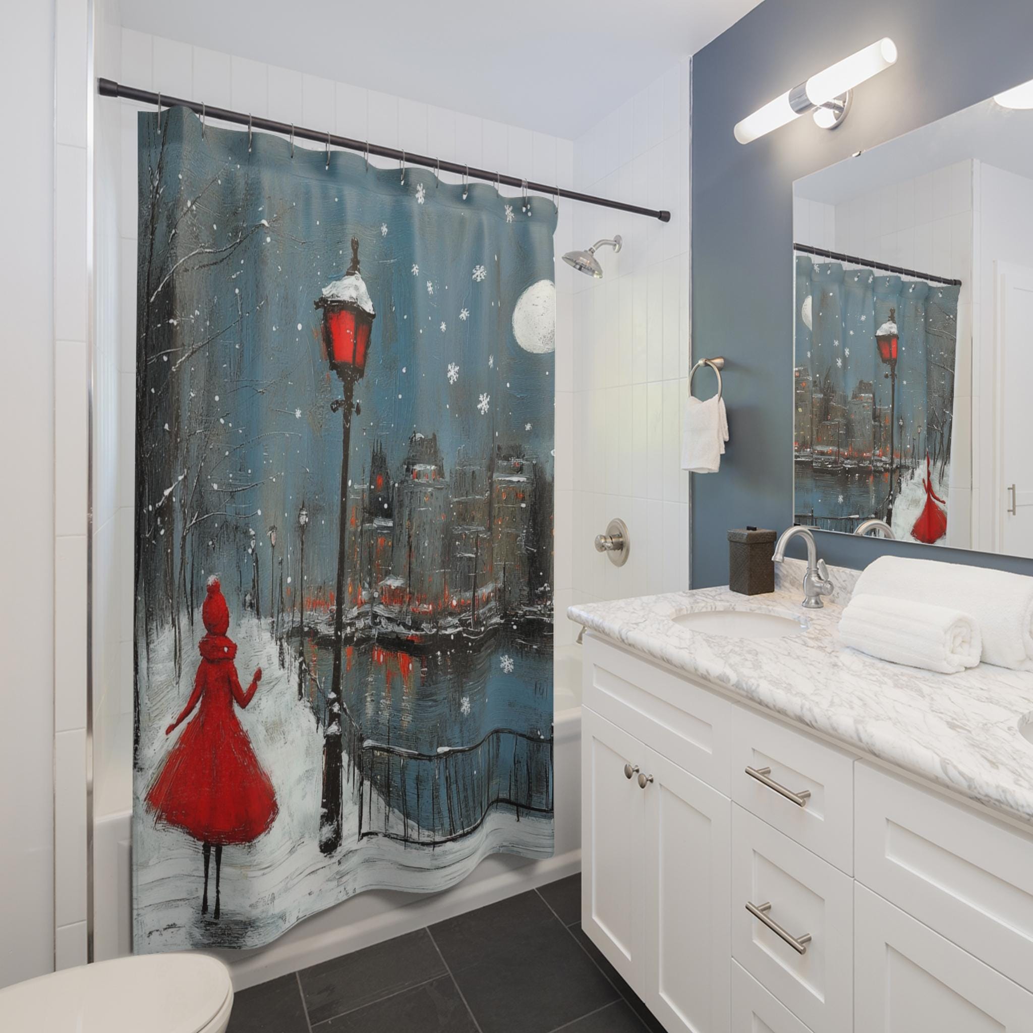 Transform your bathroom into a stylish oasis with this stunning shower curtain. Featuring a beautiful winter scene, this product exudes a cozy, serene vibe, perfect for creating a tranquil retreat in your home. Ideal for those who appreciate art and charm, it effortlessly elevates any bathroom decor. Great for the winter holidays this shower curtain brings warmth and beauty to personal spaces. It's perfect for art lovers and anyone looking to enhance their bathroom with a touch of elegance and comfort.