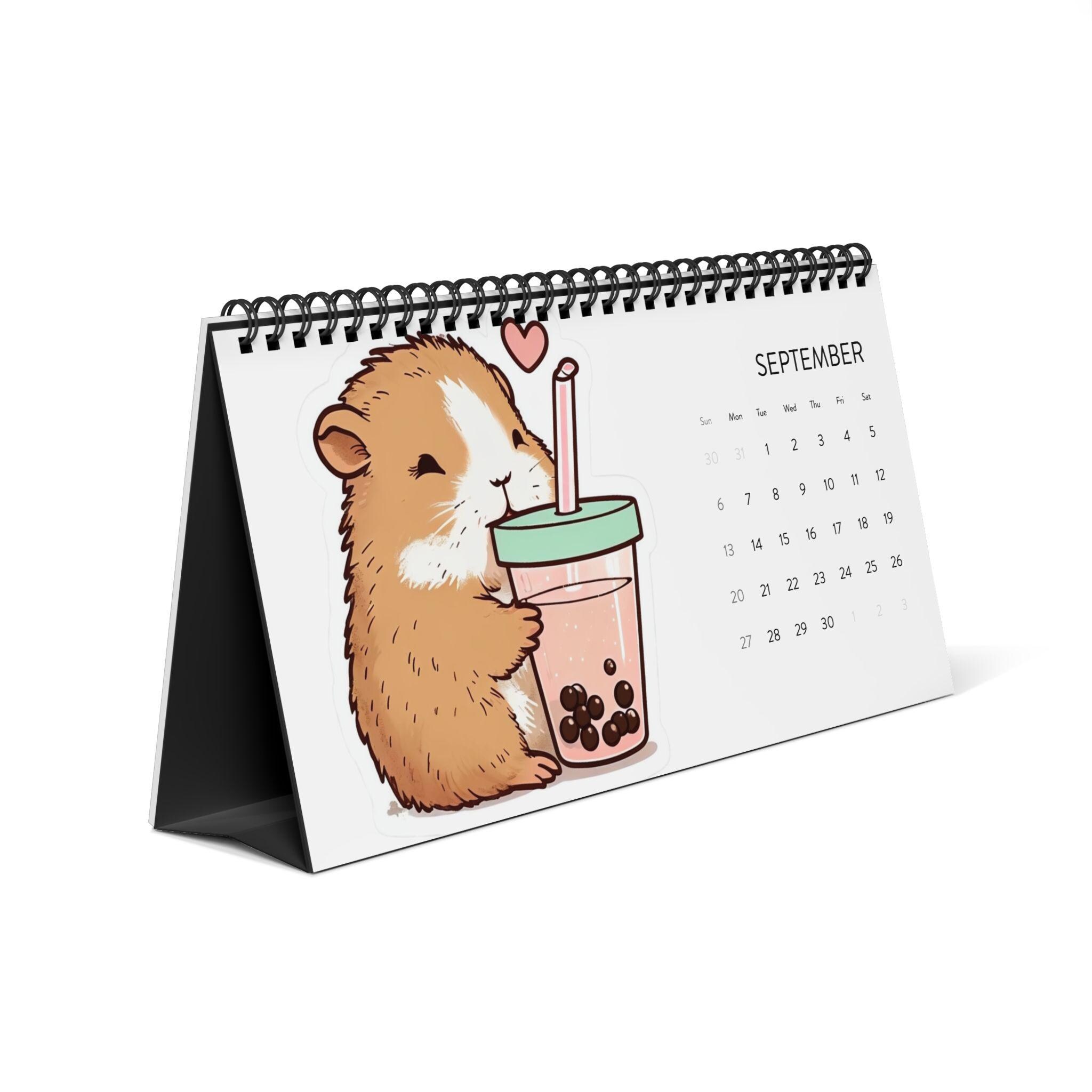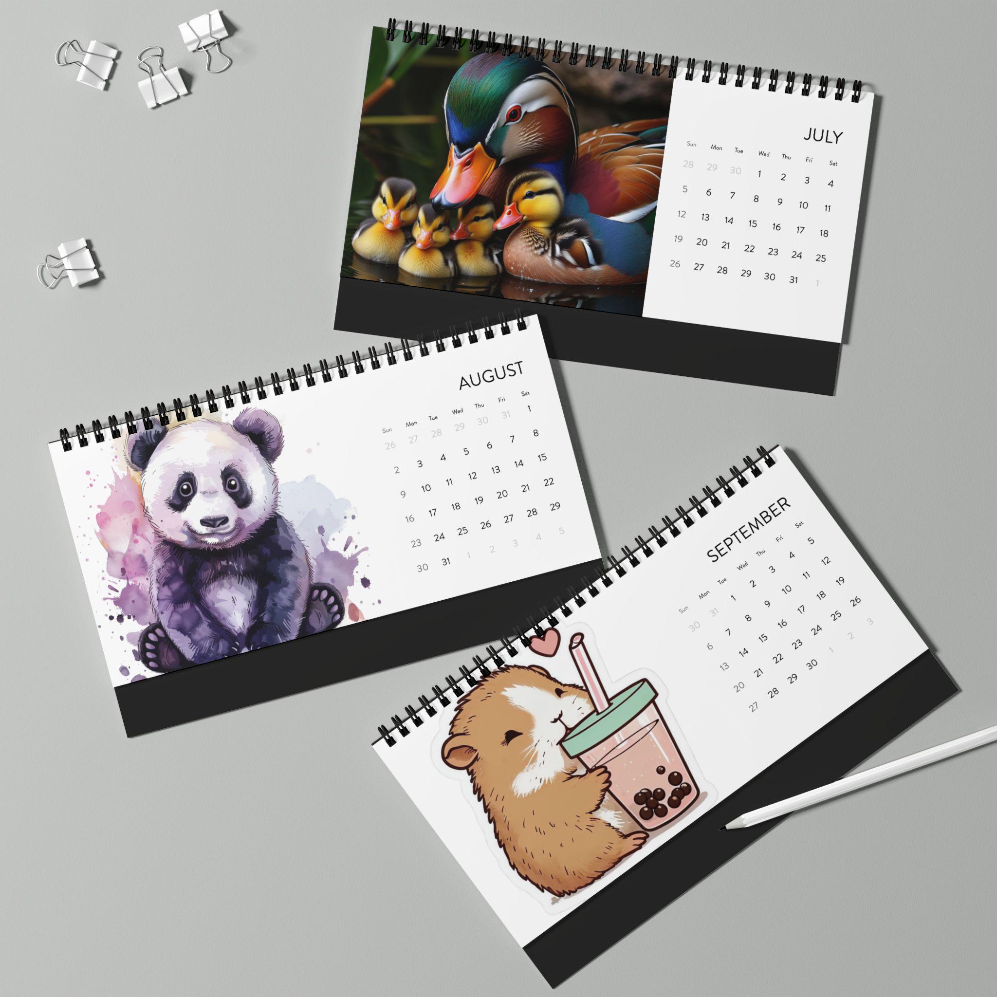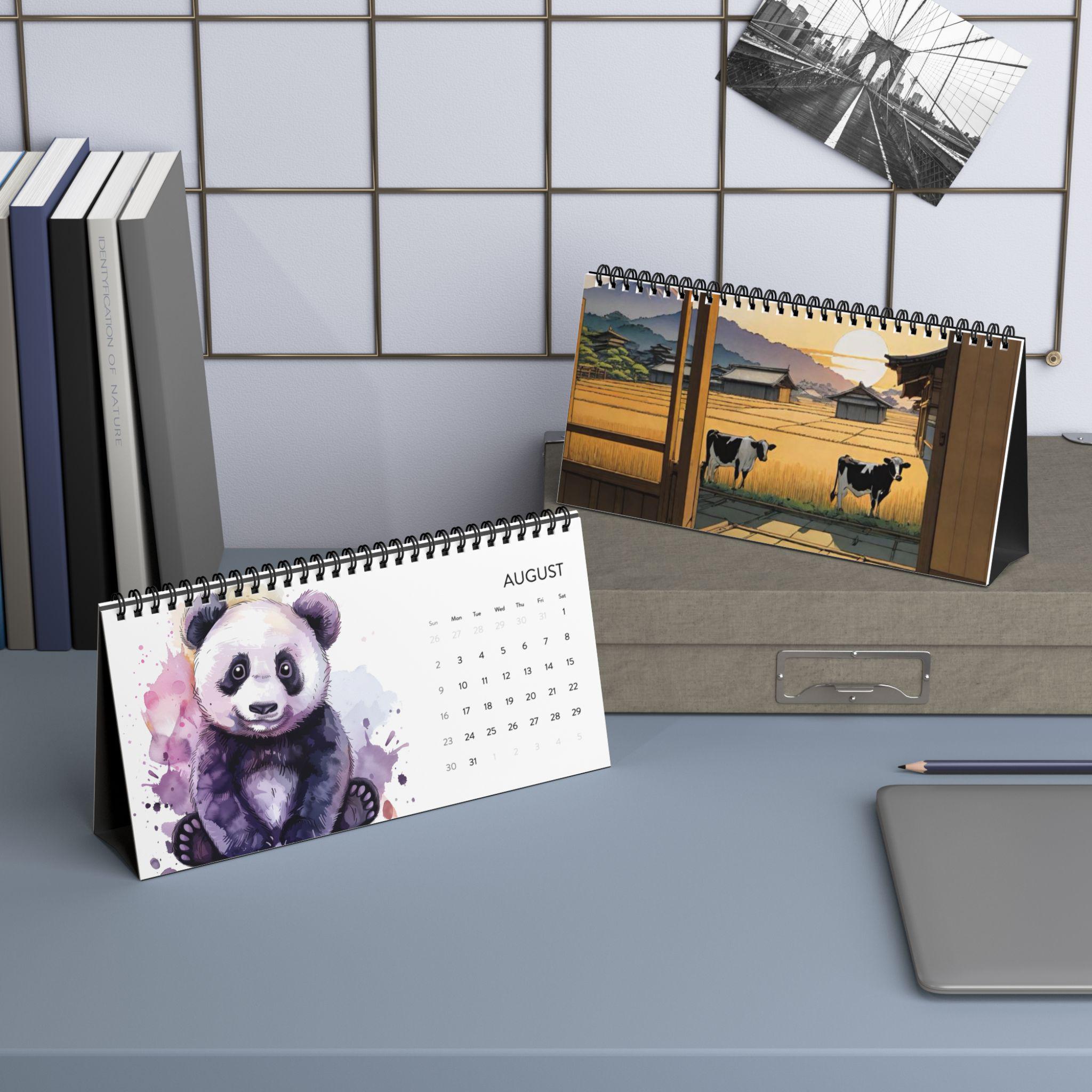 This 2026 desktop calendar brings a touch of playful charm and everyday calm to your desk. Each month pairs a bright, crisp illustration with a clear month grid so you can glance at plans without losing the mood. The low-profile 10" x 5" size fits neatly between keyboard and monitor. Sturdy black metal spiral binding and a black tent-card backing keep the pages upright and readable. Printed on 250 gsm matte paper in vivid color, the pages feel substantial and resist glare while the USA-sourced paper and domestic assembly mean quality you can notice each time you turn the page. Whether it sits on a home workbench, a cozy studio table, or a busy office shelf, this calendar quietly blends whimsy and function for daily use throughout 2026.