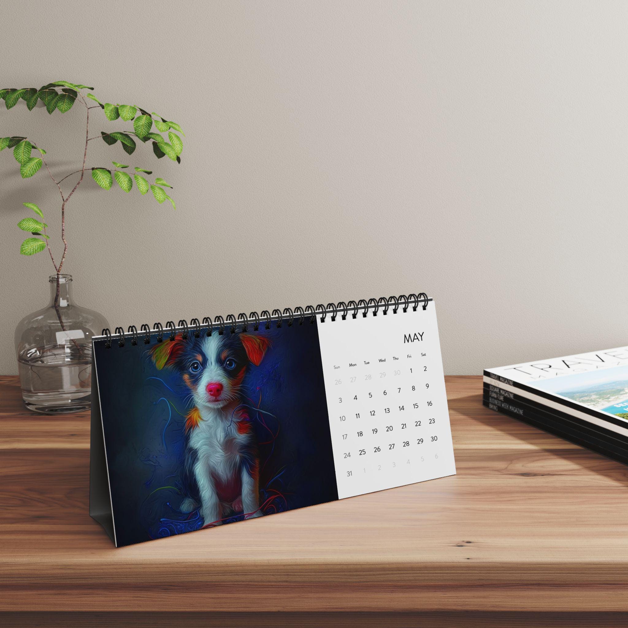 Product features - Vibrant, crisp color printing that makes illustrations pop - Black metal spiral binding with matching tent-card backing for stability - Durable 250 gsm matte paper for a premium, low-glare finish - Compact 10" x 5" desktop size with 2026 month grid - Paper sourced and product assembled in the USA