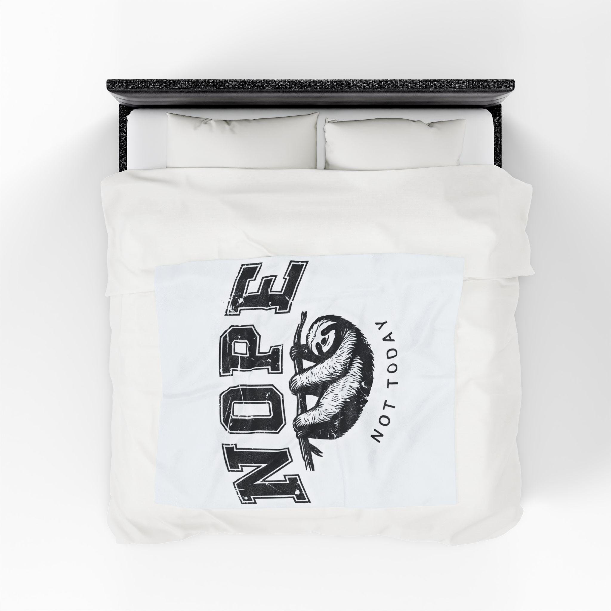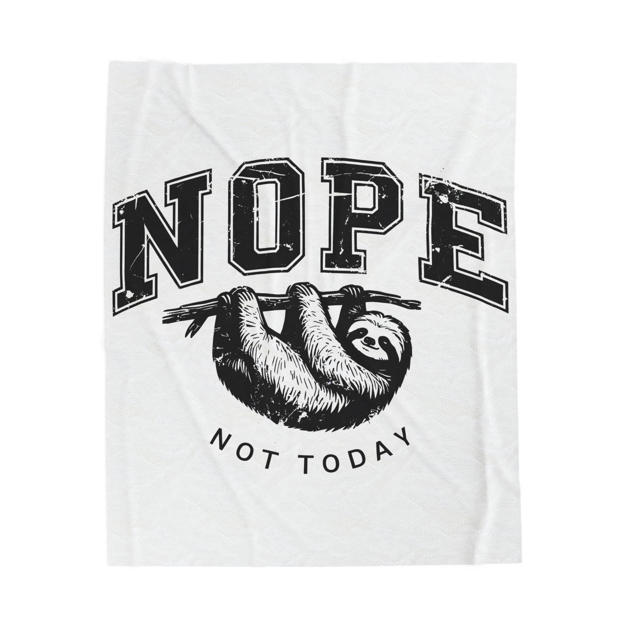 Wrap yourself in slow-morning vibes with this plush velveteen blanket. The soft, medium-weight fabric drapes easily over couch arms and knees, carrying a hand-drawn sloth and bold “NOPE” lettering that reads like a cozy, honest mood. It settles into your space—library chair, living room fort, or bedside—inviting you to pause, breathe, and skip the hurry. The monochrome print keeps the look understated and wearable with any decor, while the rich detail on one side gives the artwork depth without overwhelming the room. Slip it over your shoulders during a late-night movie, tuck it around your legs while journaling, or lay it across a guest bed for a touch of playful calm. This blanket speaks the language of slow weekends and soft boundaries.