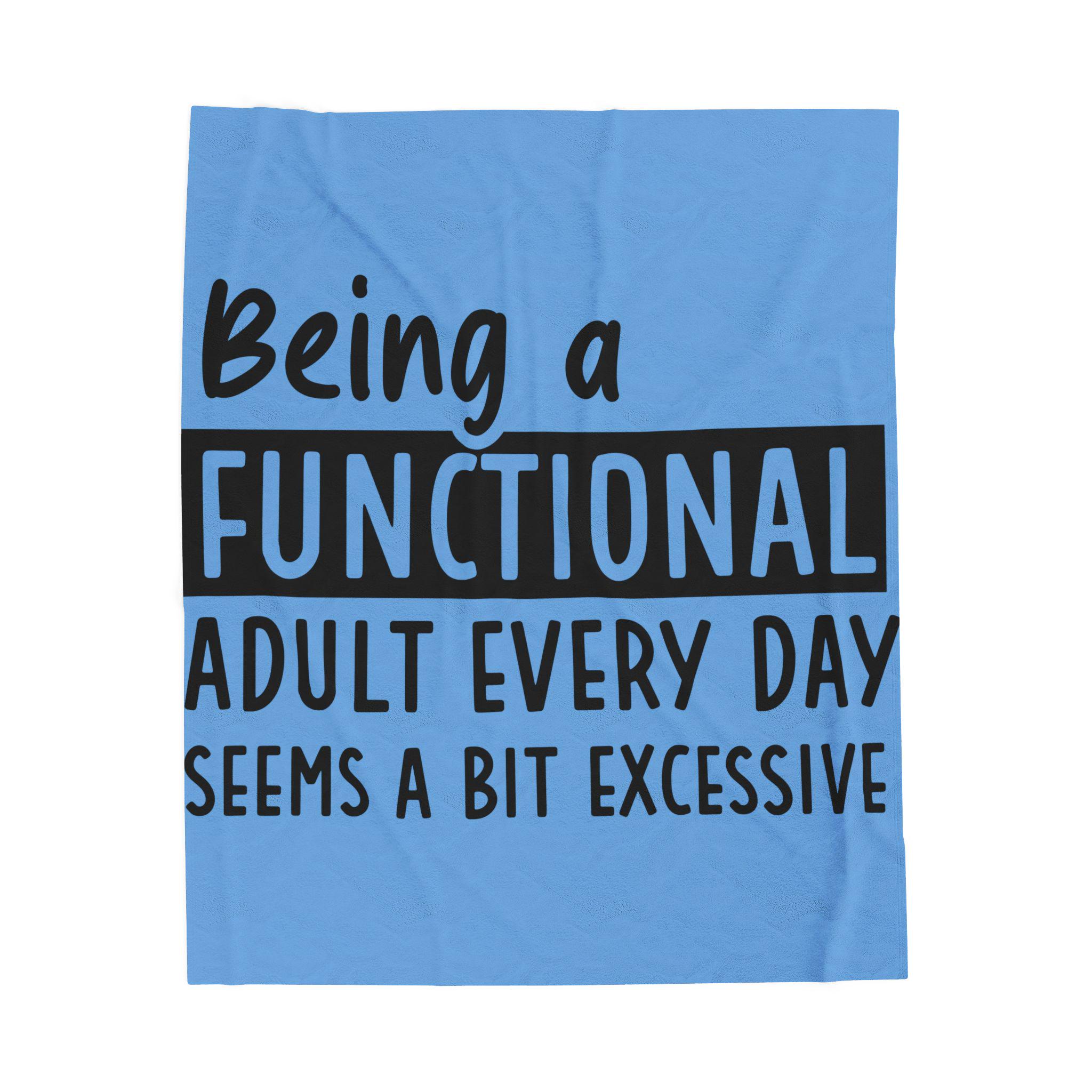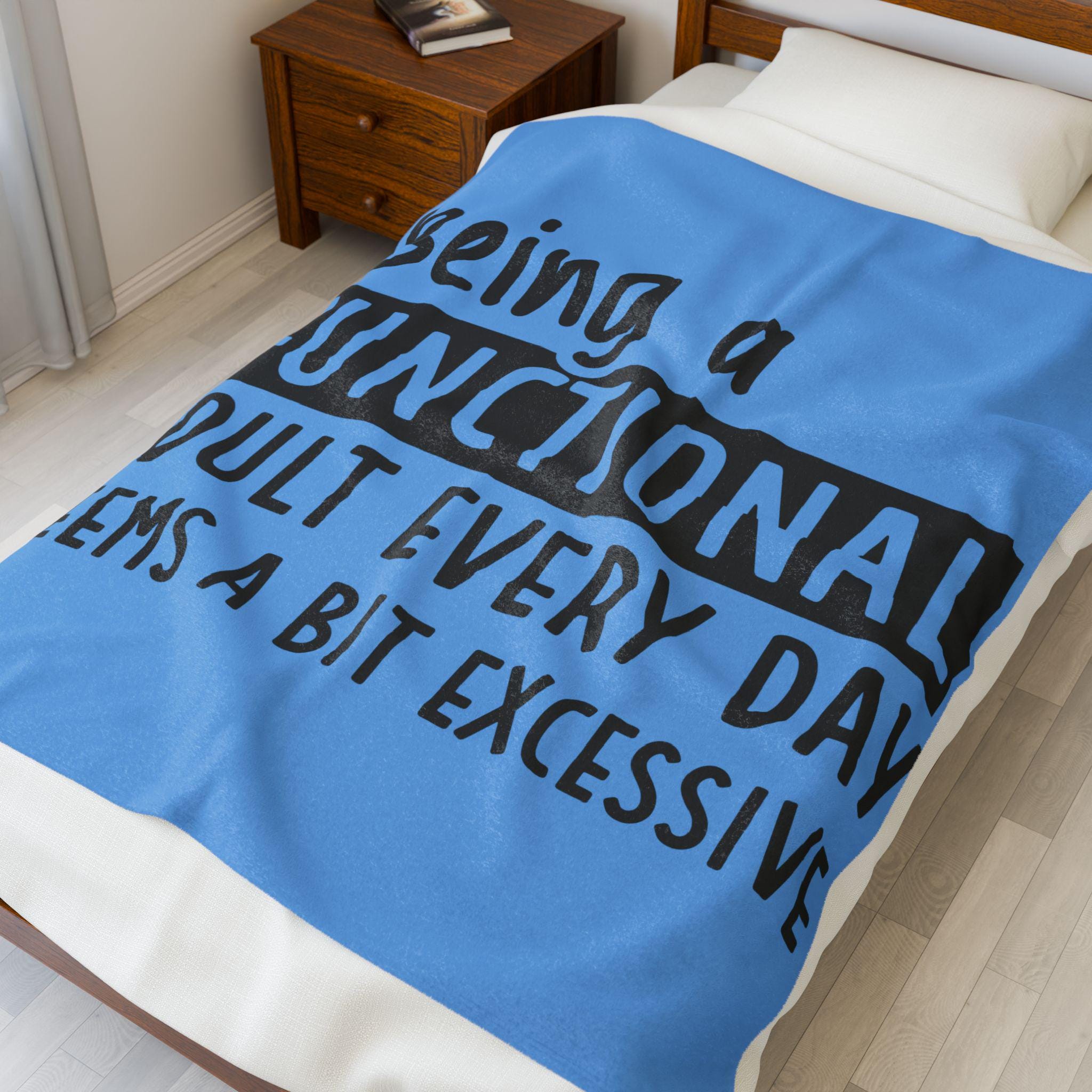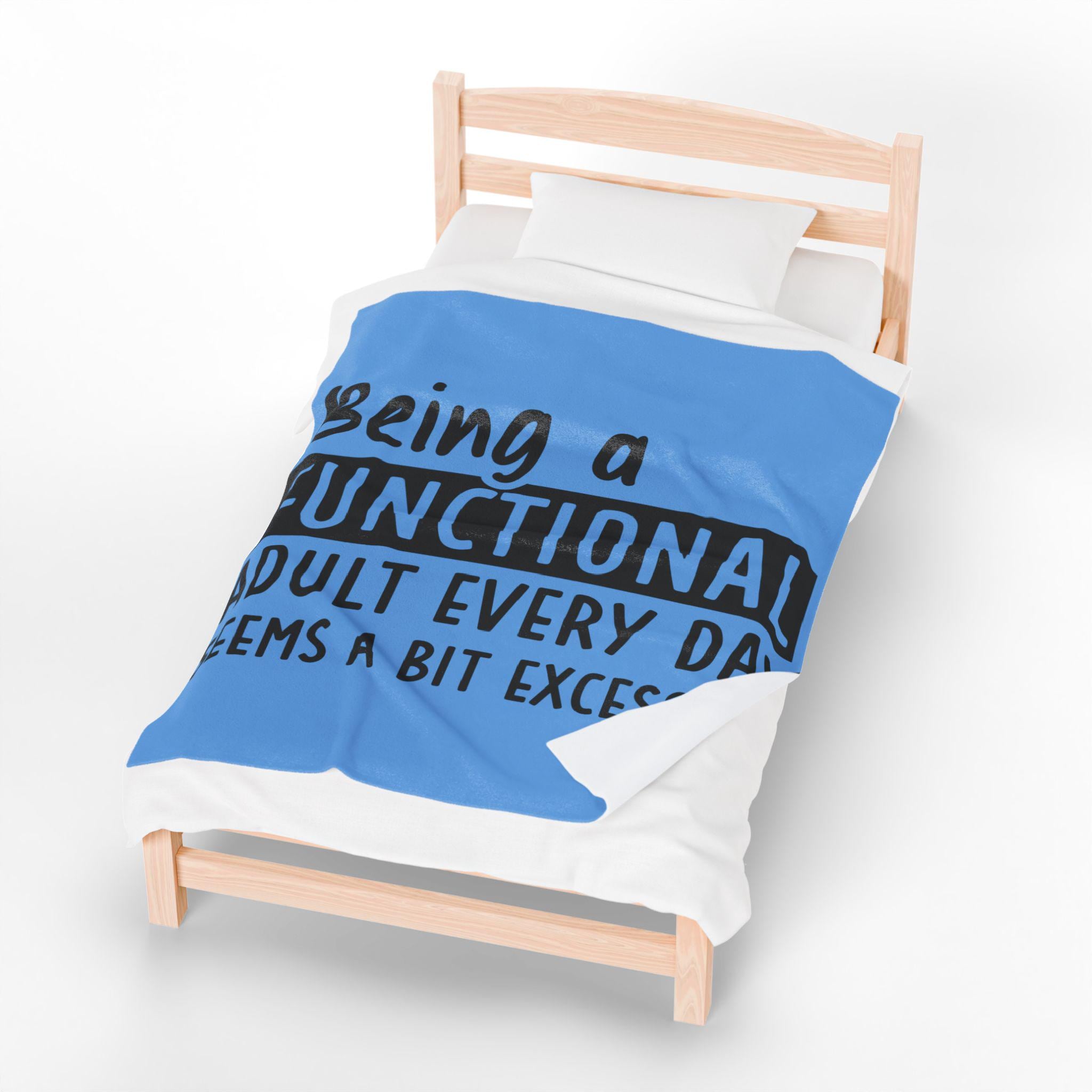 Soft, velvety warmth wrapped in a wink. This plush blanket reads like a private joke for anyone who’s balancing bills, meetings, and the slow art of surviving adulthood. The bold, typographic message sits crisp against a calming blue field, so it reads clearly across couches, beds, and home offices. It’s the kind of throw you reach for while sipping tea on a slow morning, curling up with a book after a long day, or keeping nearby during late-night work sessions — a little comfort and a little honesty in one cozy layer.