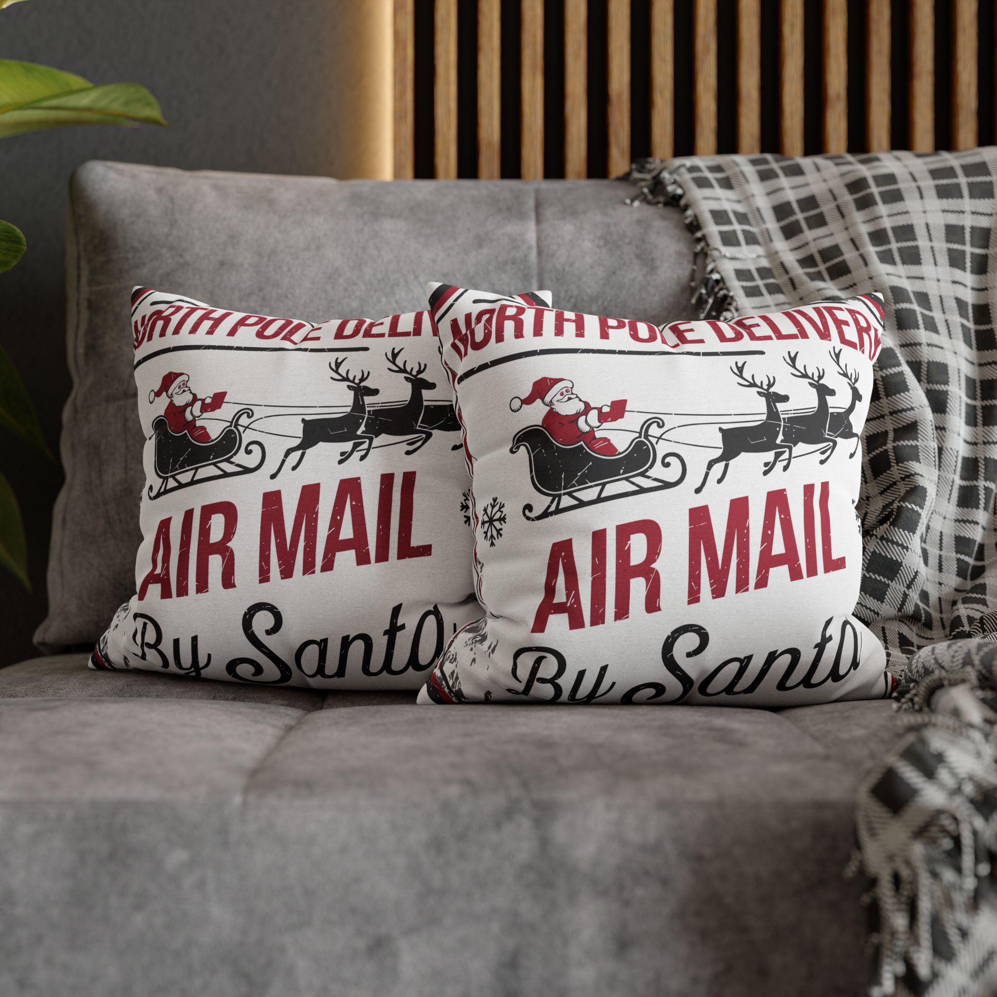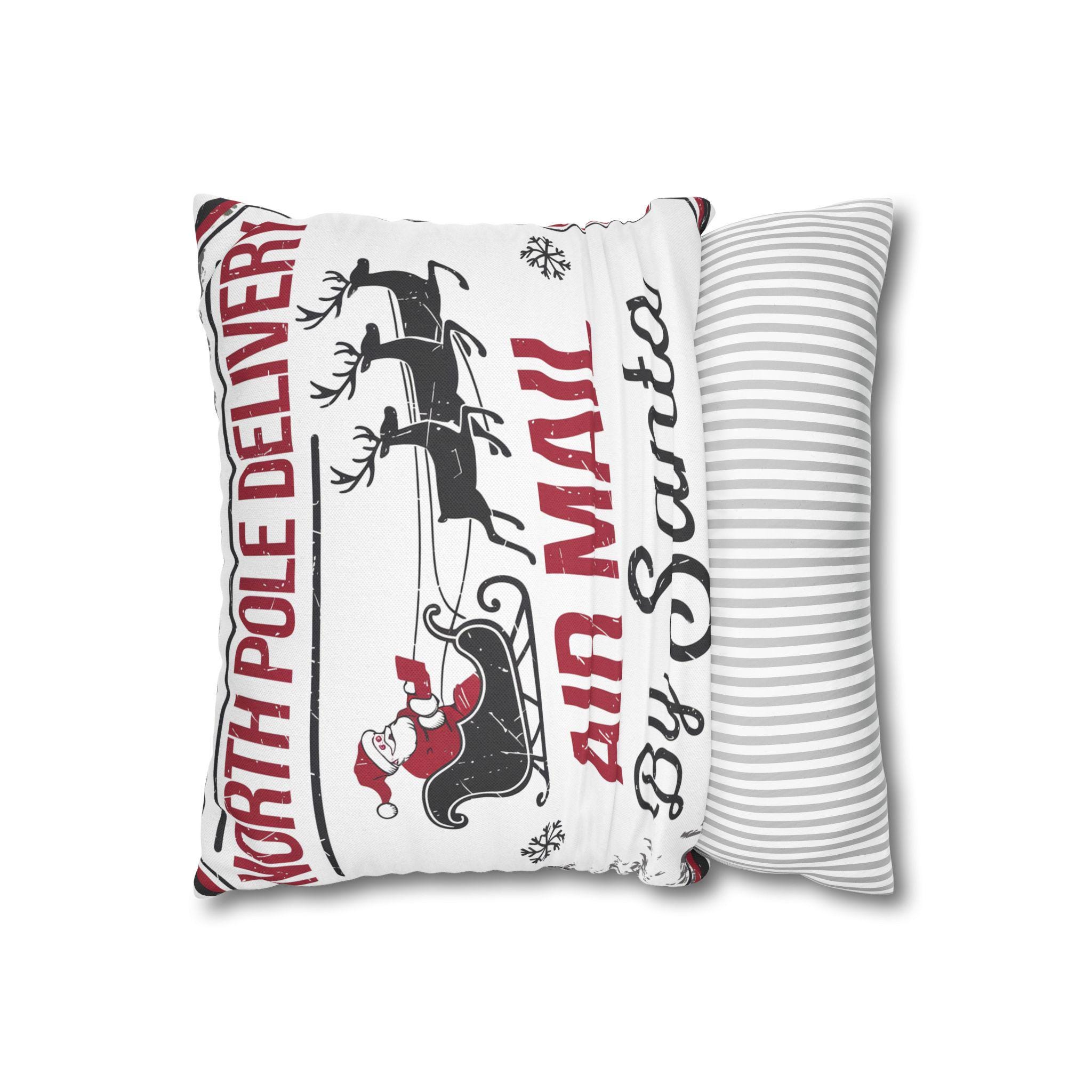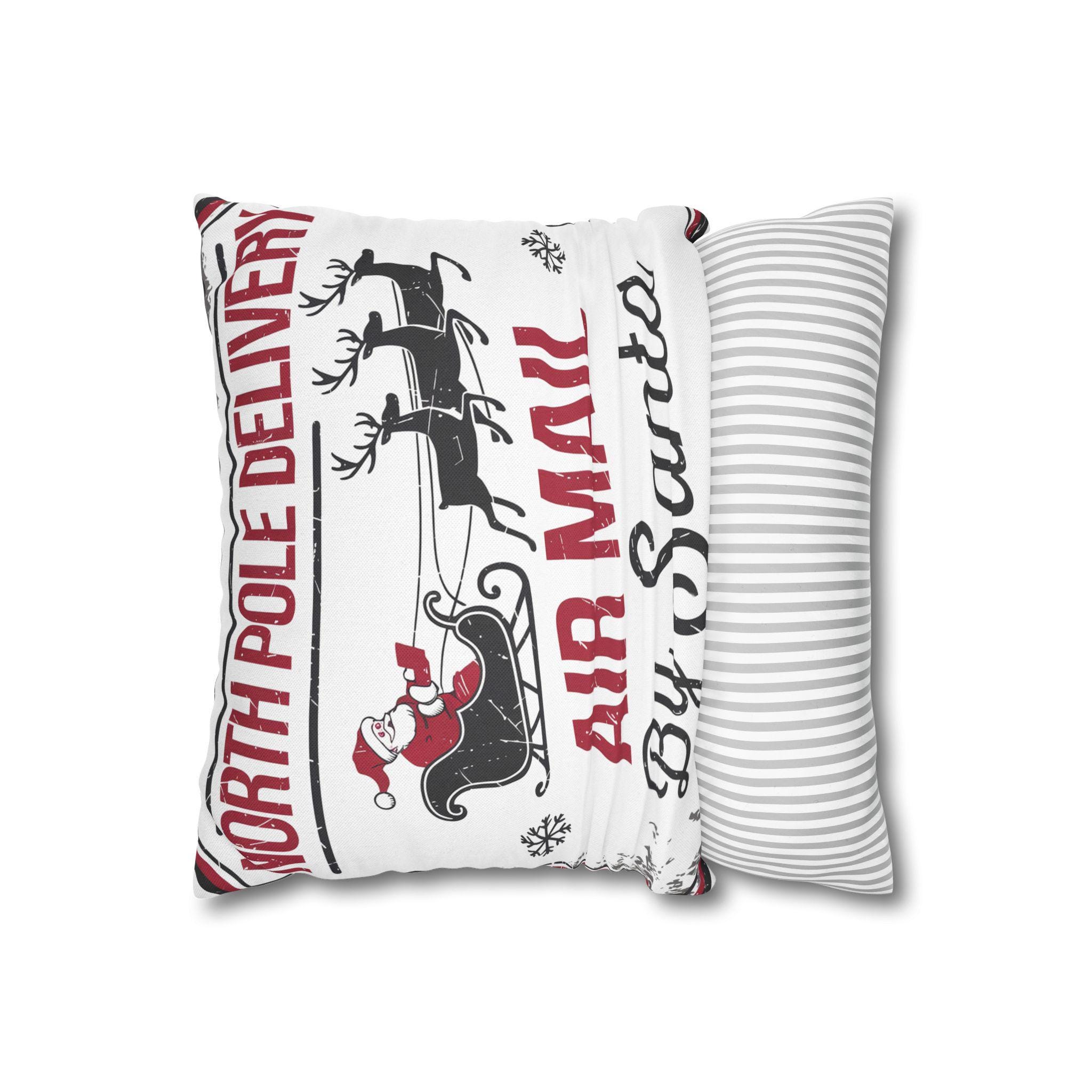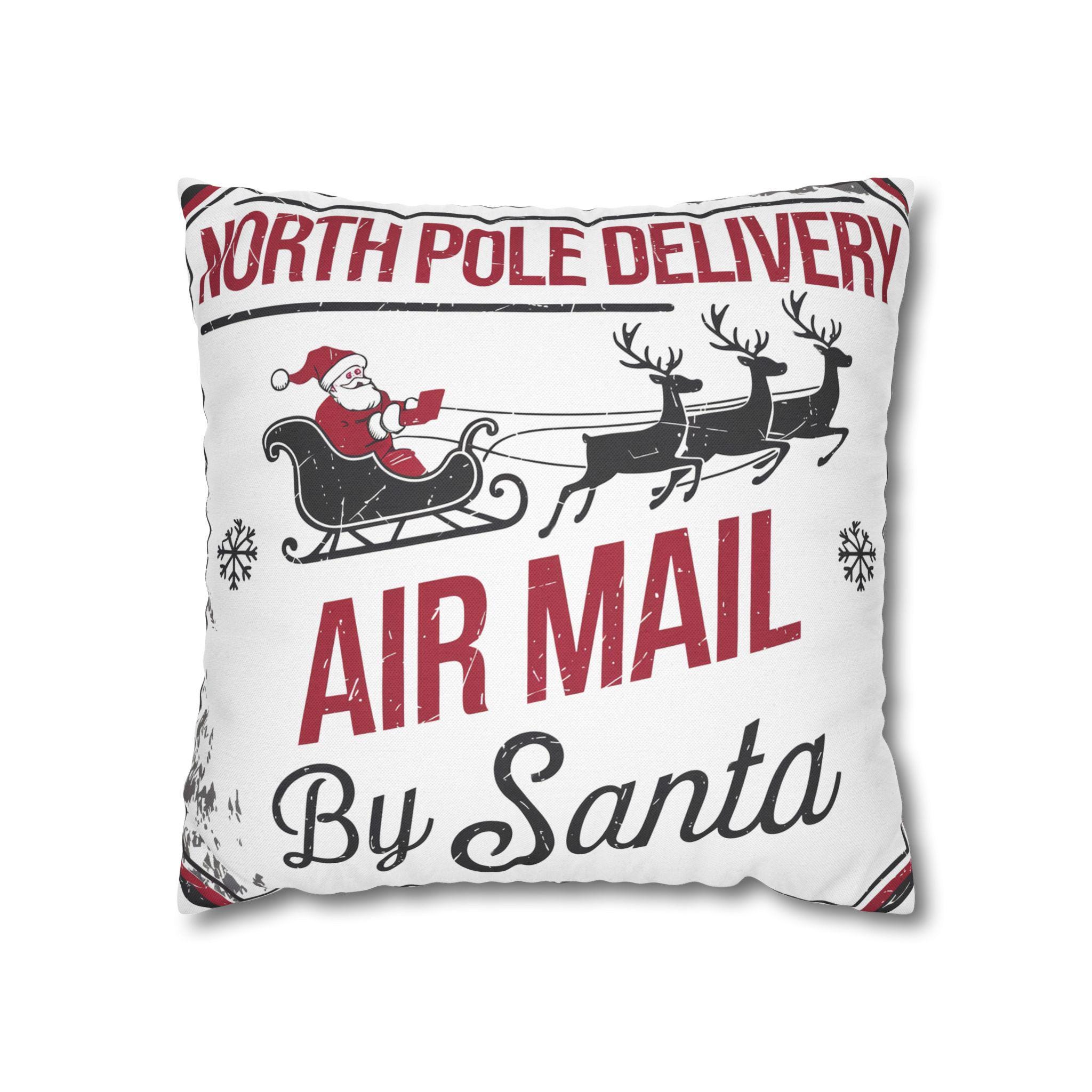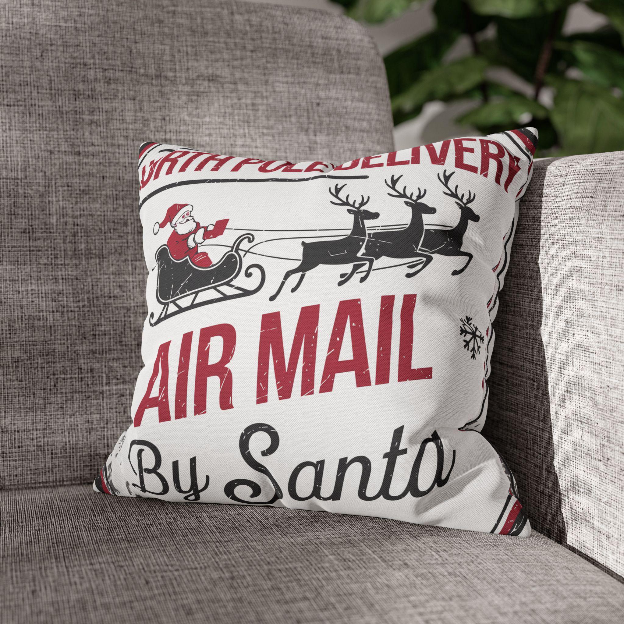 Snow-flecked mornings and mugs of cocoa — this square spun polyester pillow cover brings a touch of vintage holiday cheer to cozy corners. The double-sided design shows a retro ‘North Pole Delivery — Air Mail by Santa’ print. The cover’s spun polyester weave holds its shape and resists wrinkles, so it stays neat without ironing. A concealed beige zipper with a metal pull keeps the look seamless. Use it to layer on a sofa, tuck into a reading nook, or add a seasonal pop on your bed — it blends with rustic farmhouse or classic holiday decor and wears the season’s nostalgia with ease.
