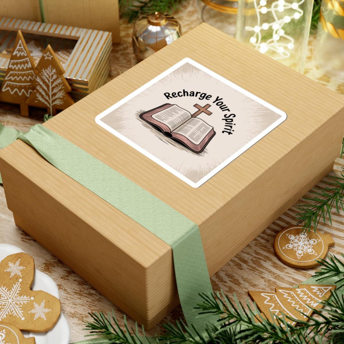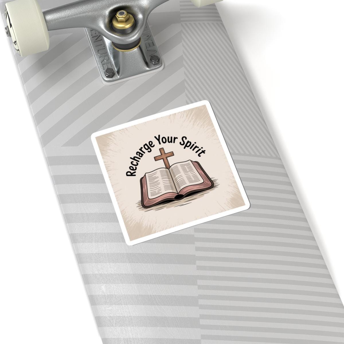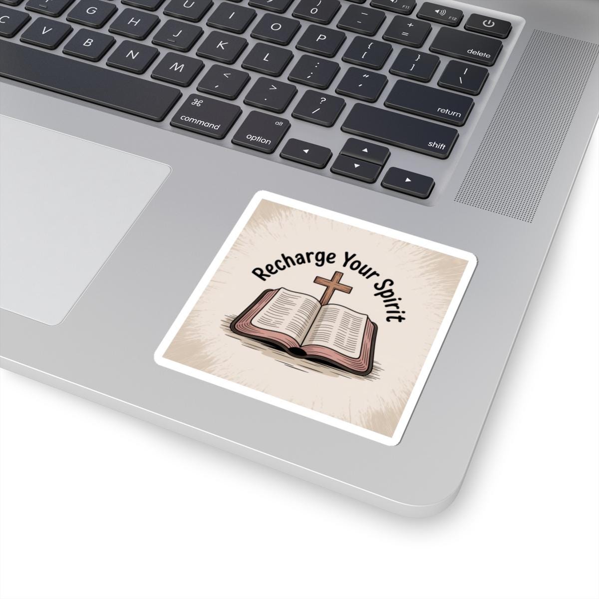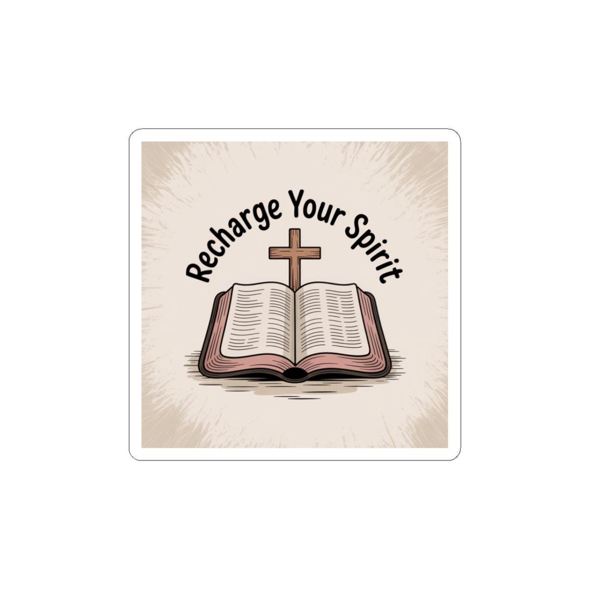 Quiet and encouraging, this glossy kiss-cut sticker shows an open Bible with a wooden cross and the words “Recharge Your Spirit.” It brings a soft, vintage-inspired look and warm neutral tones that blend into journals, laptops, water bottles (indoor use), and church handouts. The subtle textured background keeps the design calm and grounded — a small, steady reminder to pause, read, and refill one’s faith throughout the day. Fits easily on a laptop corner or inside a devotional journal, and the strong adhesive keeps it in place without bubbles for a neat finish.