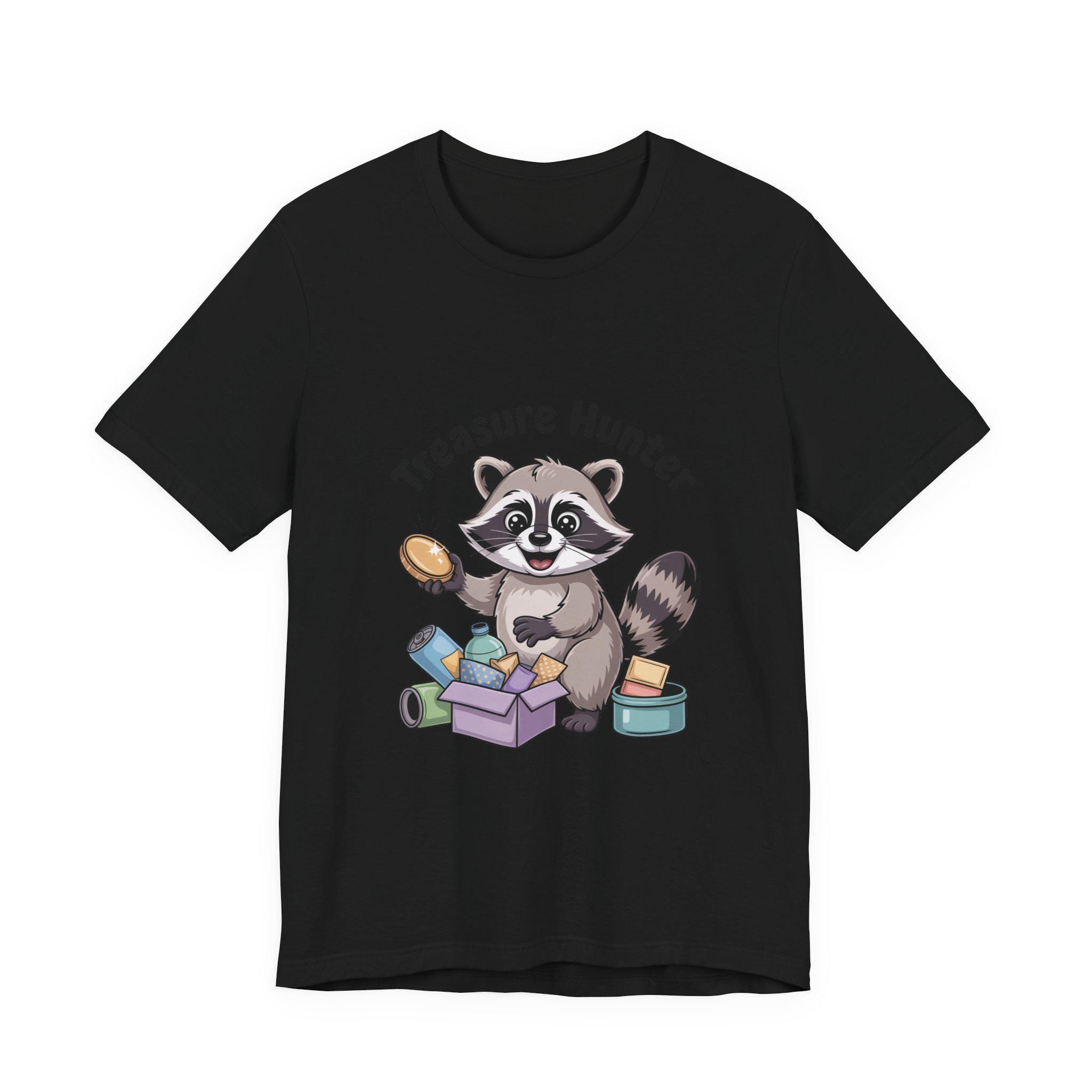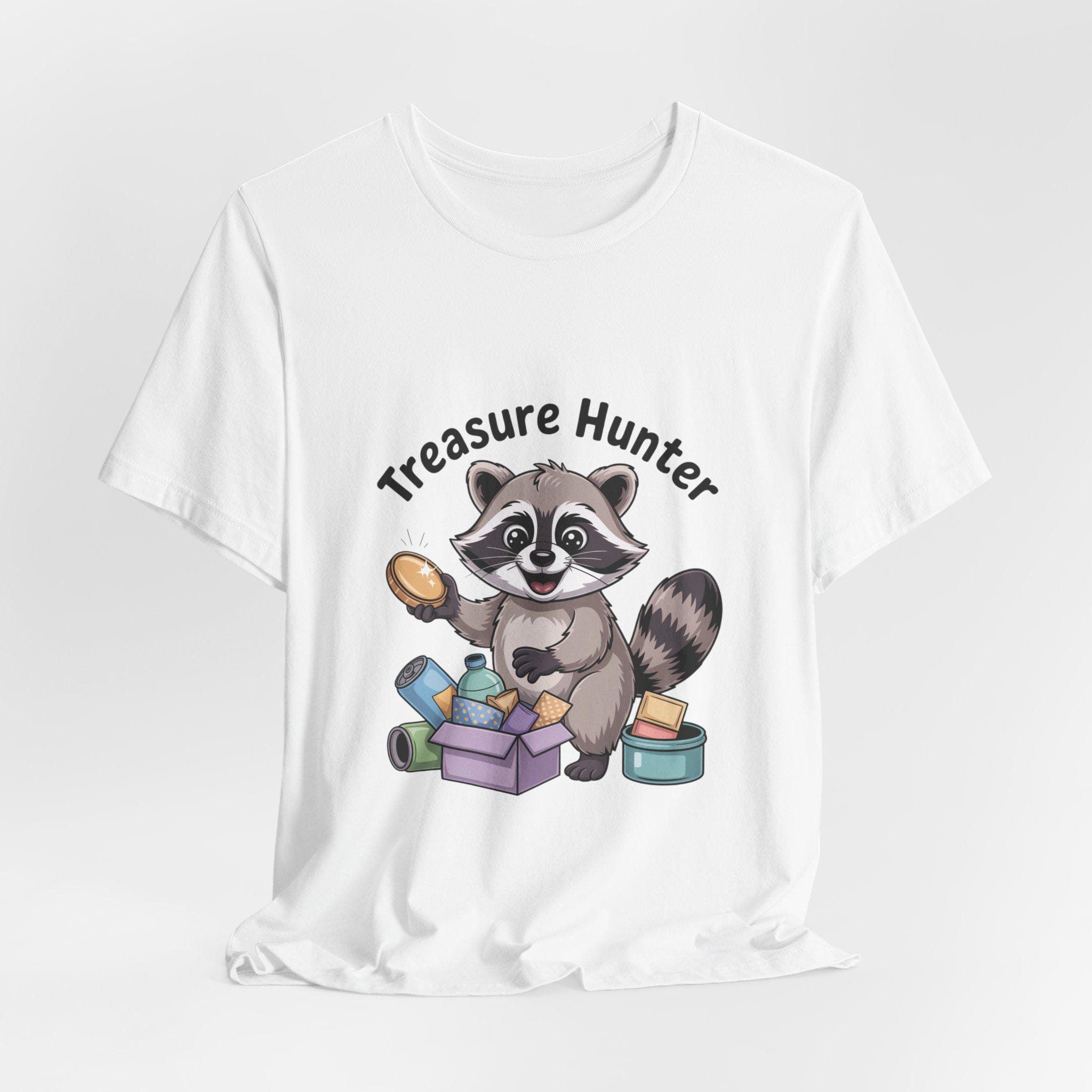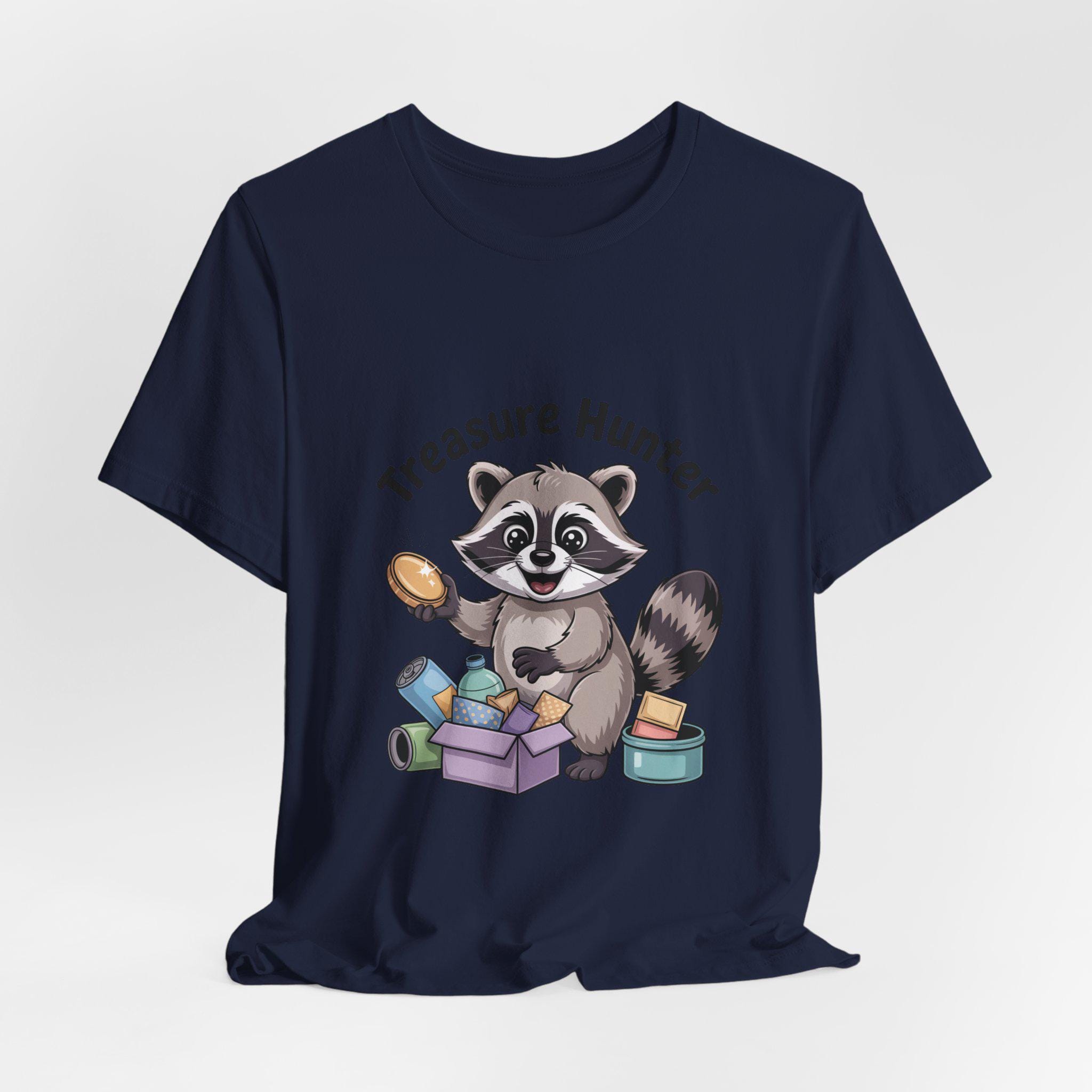 Playful raccoon illustration with soft, rounded lines and a pastel palette that leans into the Trash Animal Joy trend — a sweet, slightly mischievous vibe that reads as lighthearted holiday mischief. The artwork shows a smiling raccoon sifting through a pile of small wrapped items and containers, giving a warm, tongue-in-cheek “trash panda” mood without harsh edges or edgy type. Suited to shoppers hunting for merry trash-mas or cute raccoon apparel, it fits seasonal, meme-friendly wardrobes and everyday casual wear.