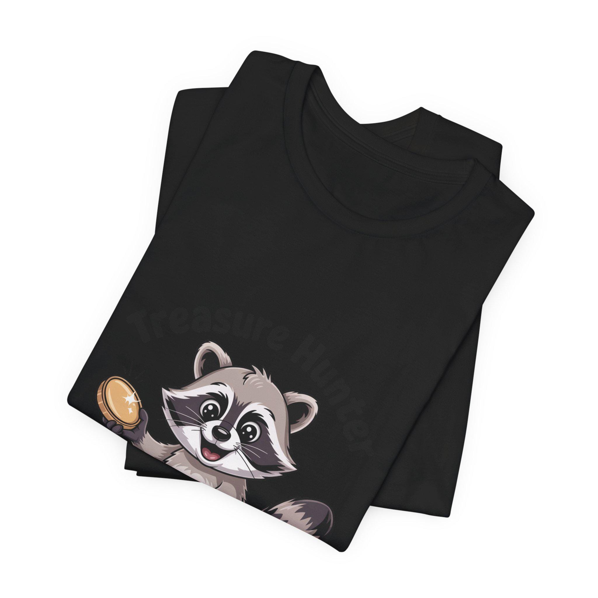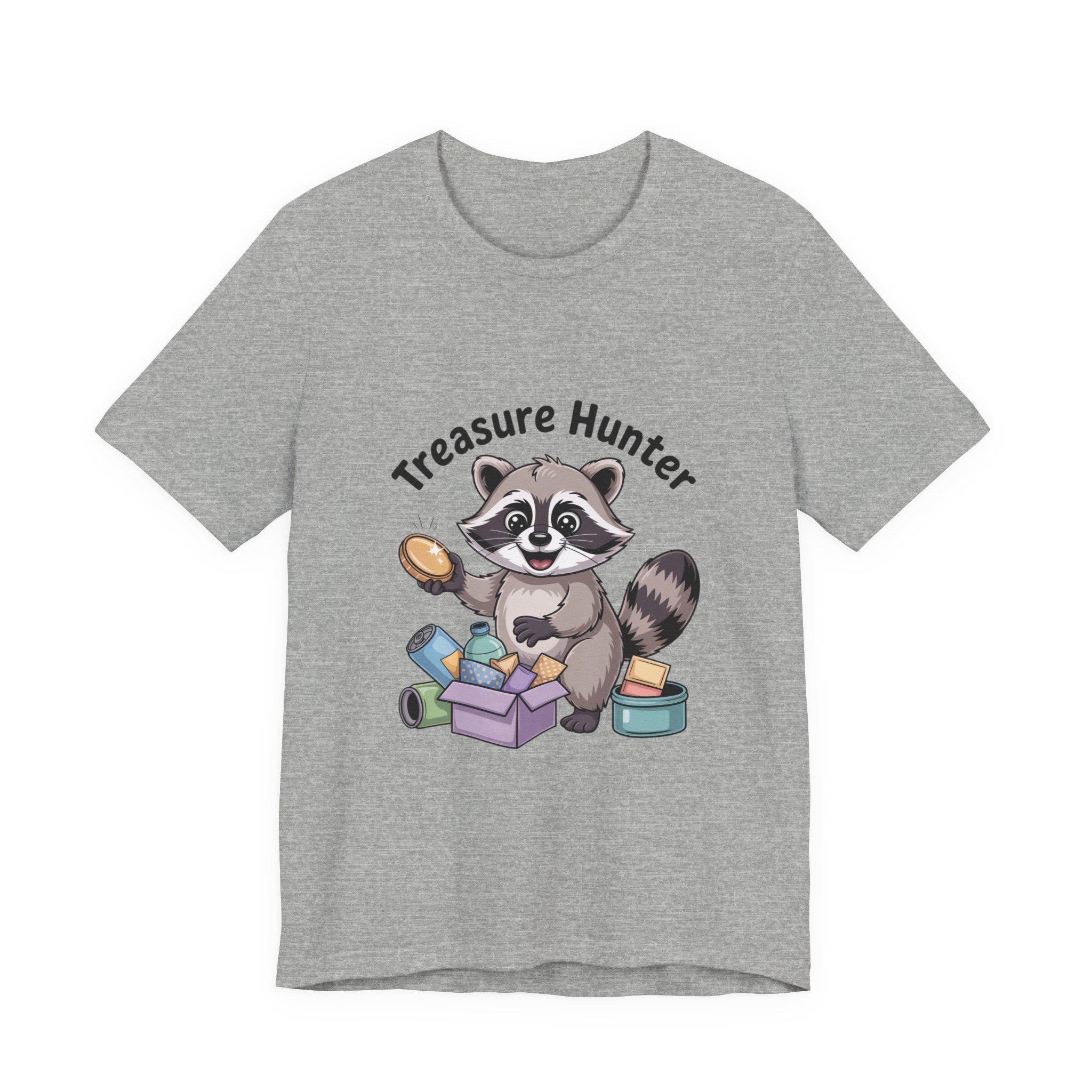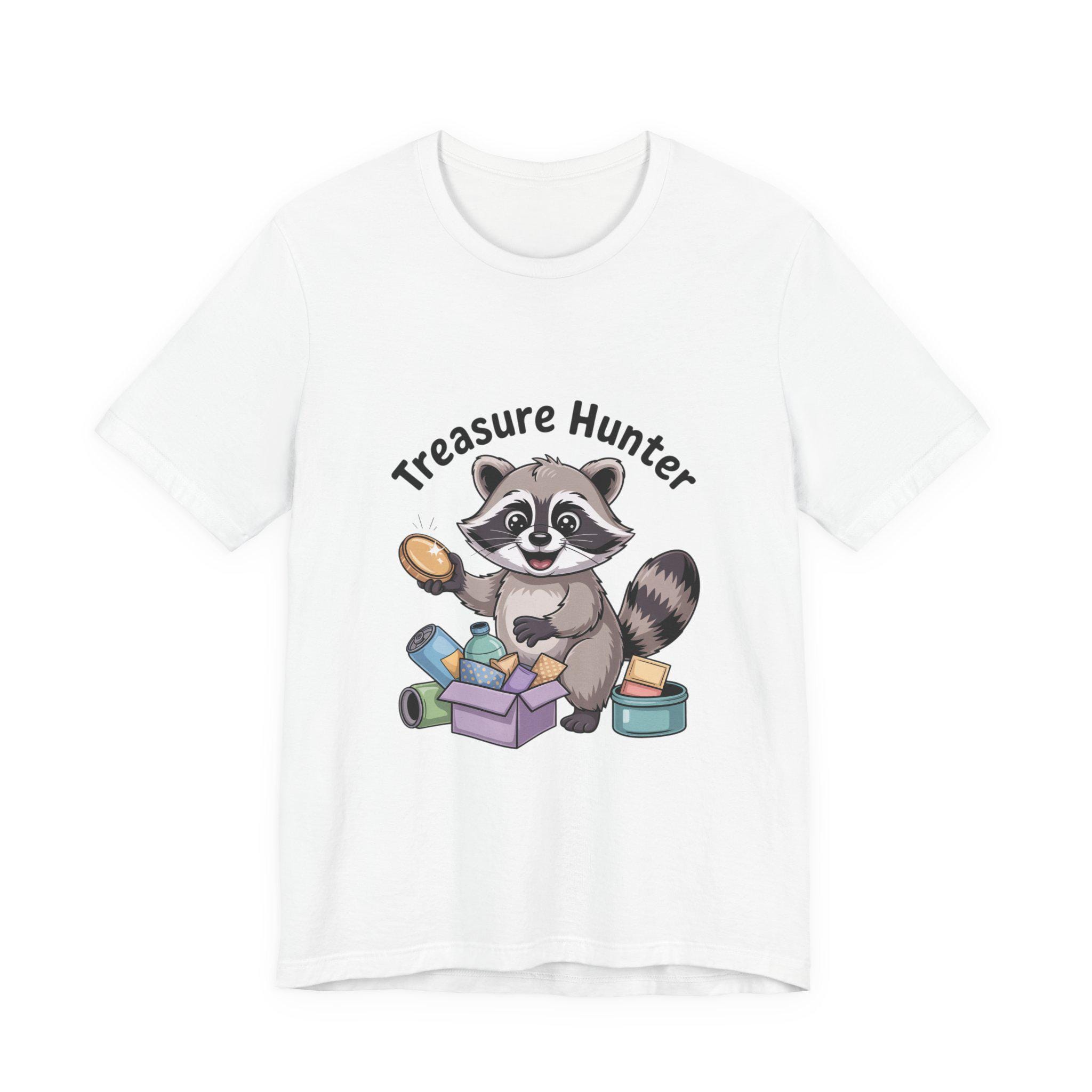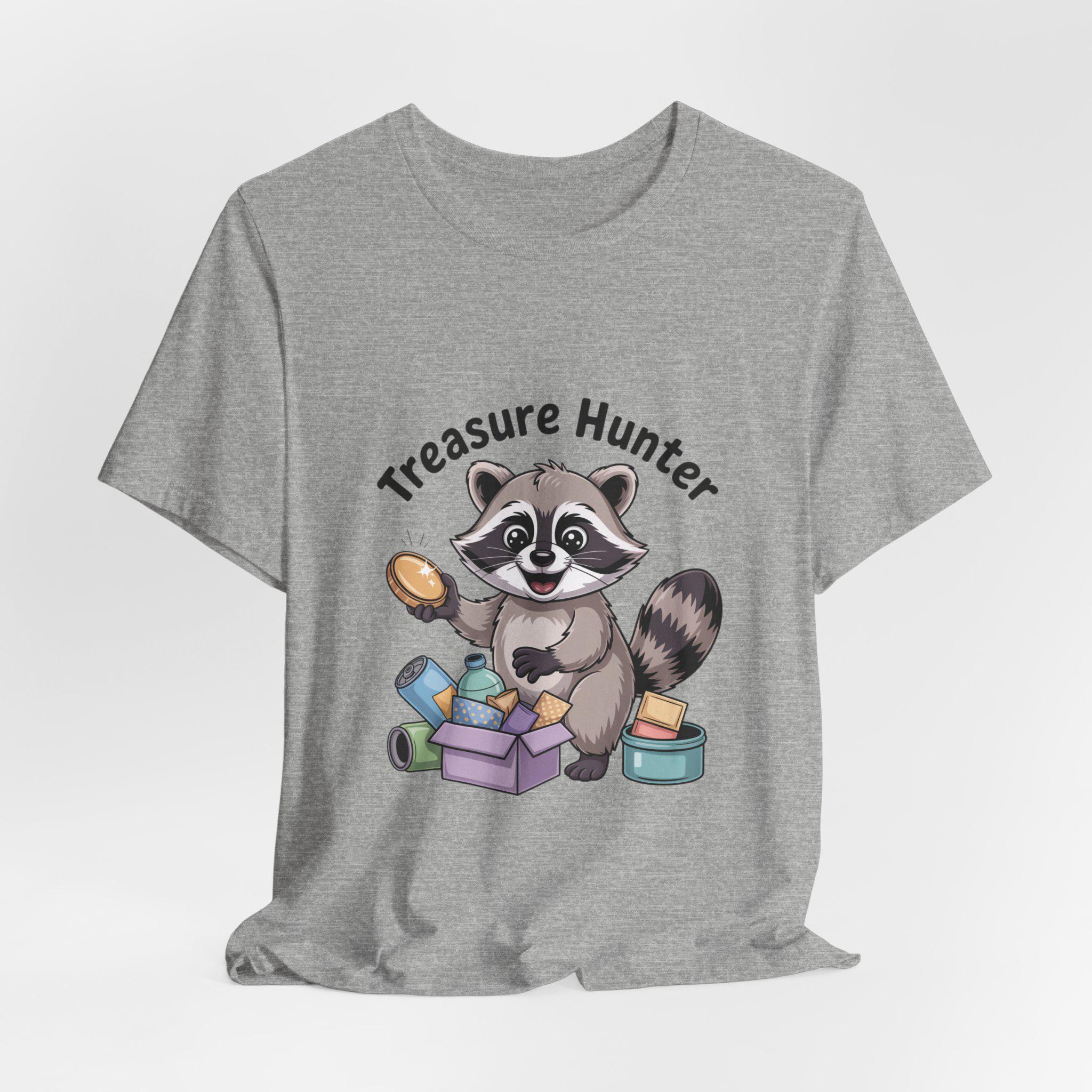 Playful raccoon illustration with soft, rounded lines and a pastel palette that leans into the Trash Animal Joy trend — a sweet, slightly mischievous vibe that reads as lighthearted holiday mischief. The artwork shows a smiling raccoon sifting through a pile of small wrapped items and containers, giving a warm, tongue-in-cheek “trash panda” mood without harsh edges or edgy type. Suited to shoppers hunting for merry trash-mas or cute raccoon apparel, it fits seasonal, meme-friendly wardrobes and everyday casual wear.